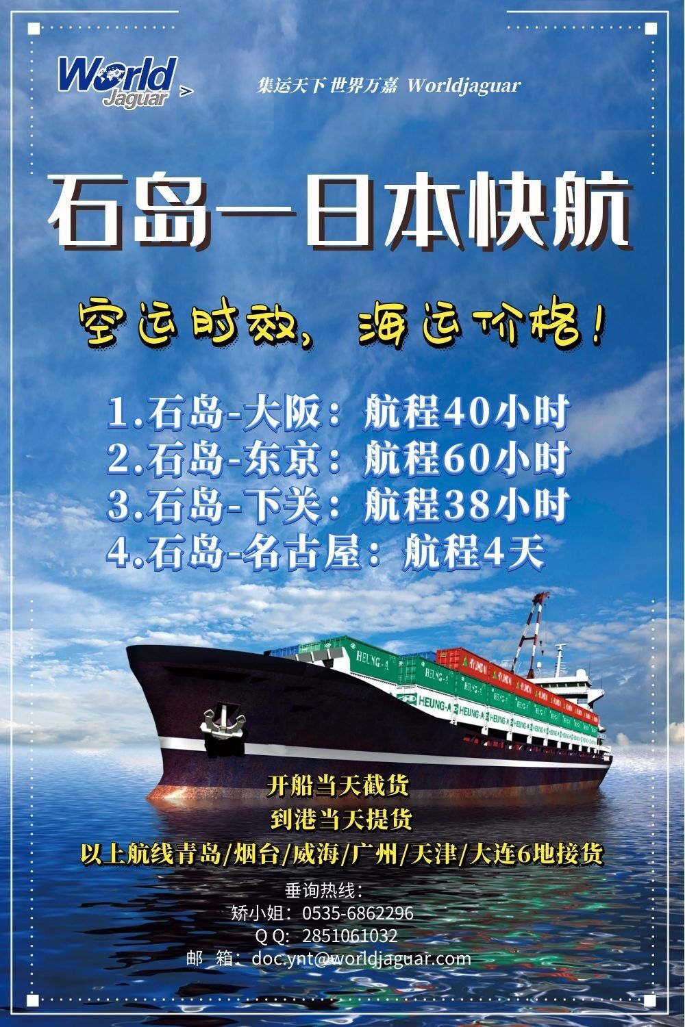 海运价格,空运速度,石岛快船航线可达大阪、东京、名古屋、下关。